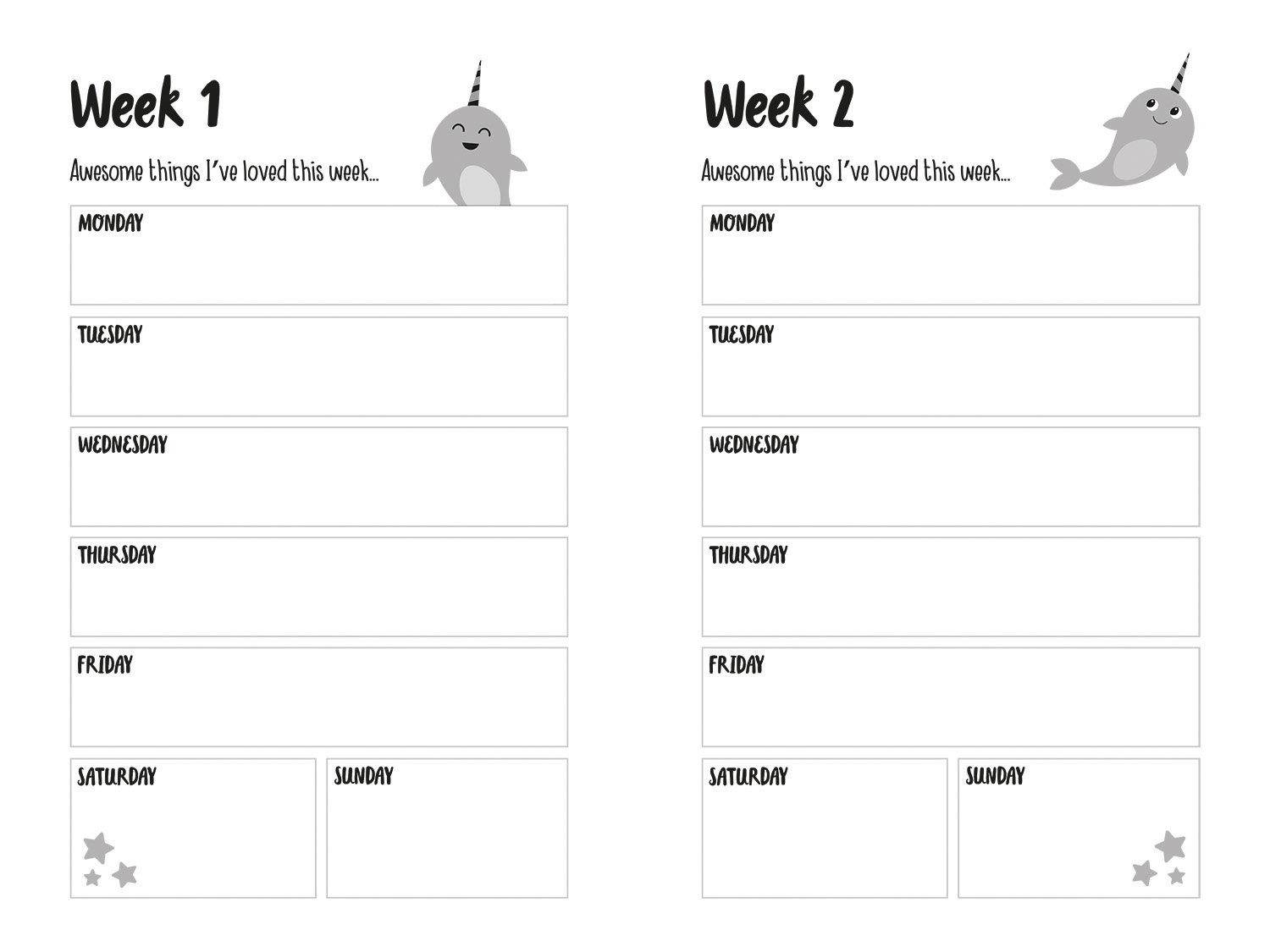 Create a year of mindfulness with the 52 week-to-view fill-in pages for you to capture 365 days of gratitude. The fill-in pages are undated, so they can be started at any time of year.