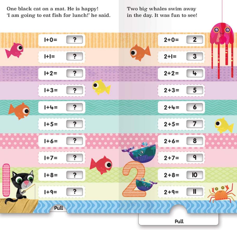 The pull-the-tab format is a perfect method of teaching children counting and addition and a wonderful way to encourage discussion and discovery.