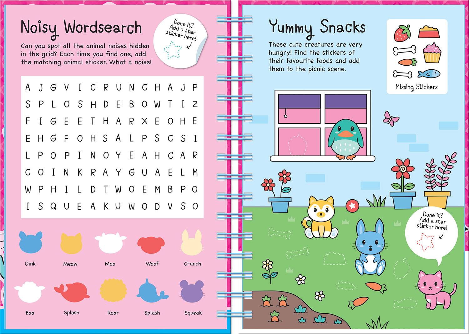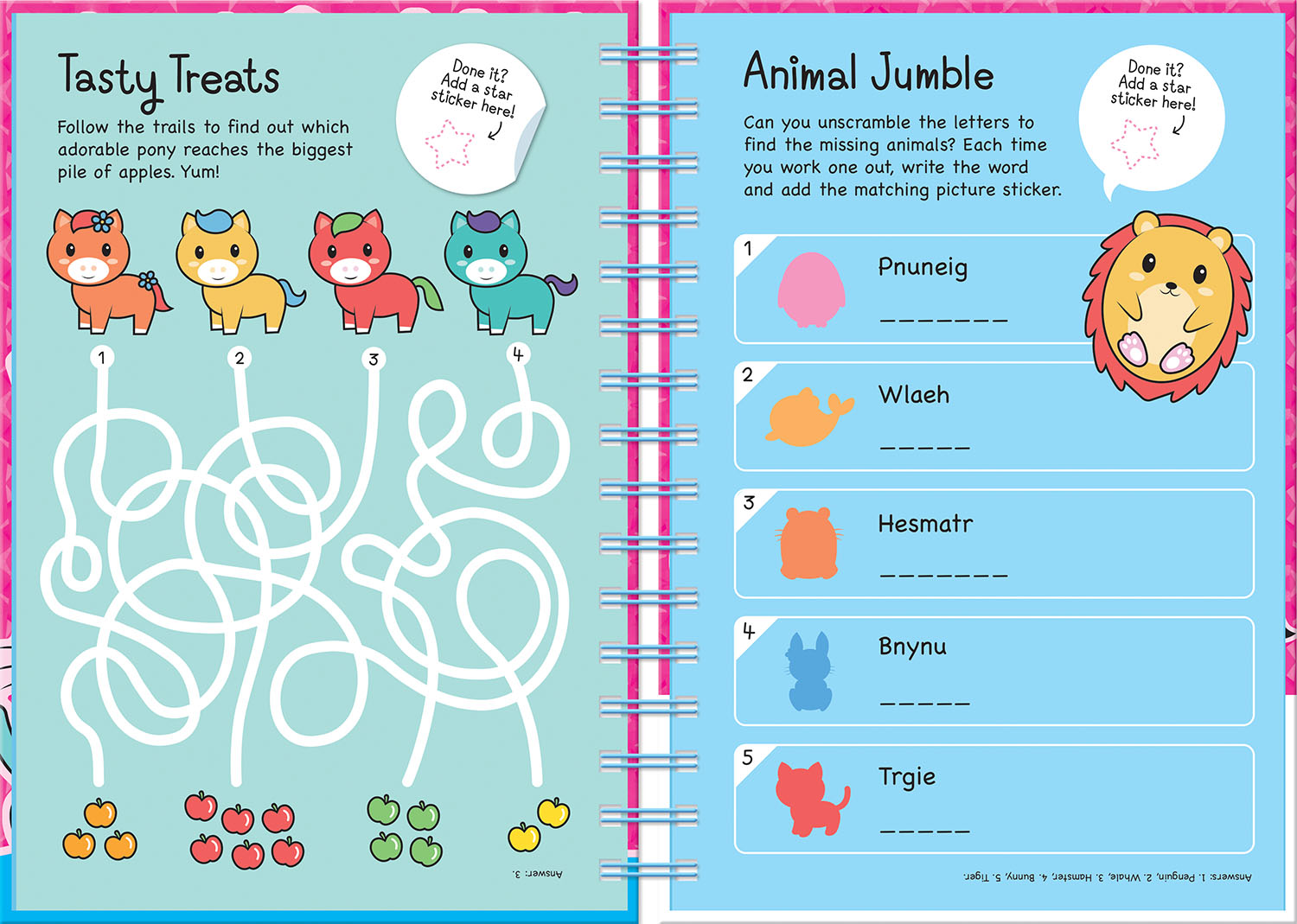 Complete over 20 pages of animal puzzles, like matching activities, word searches, colouring pages, mazes and much more.
