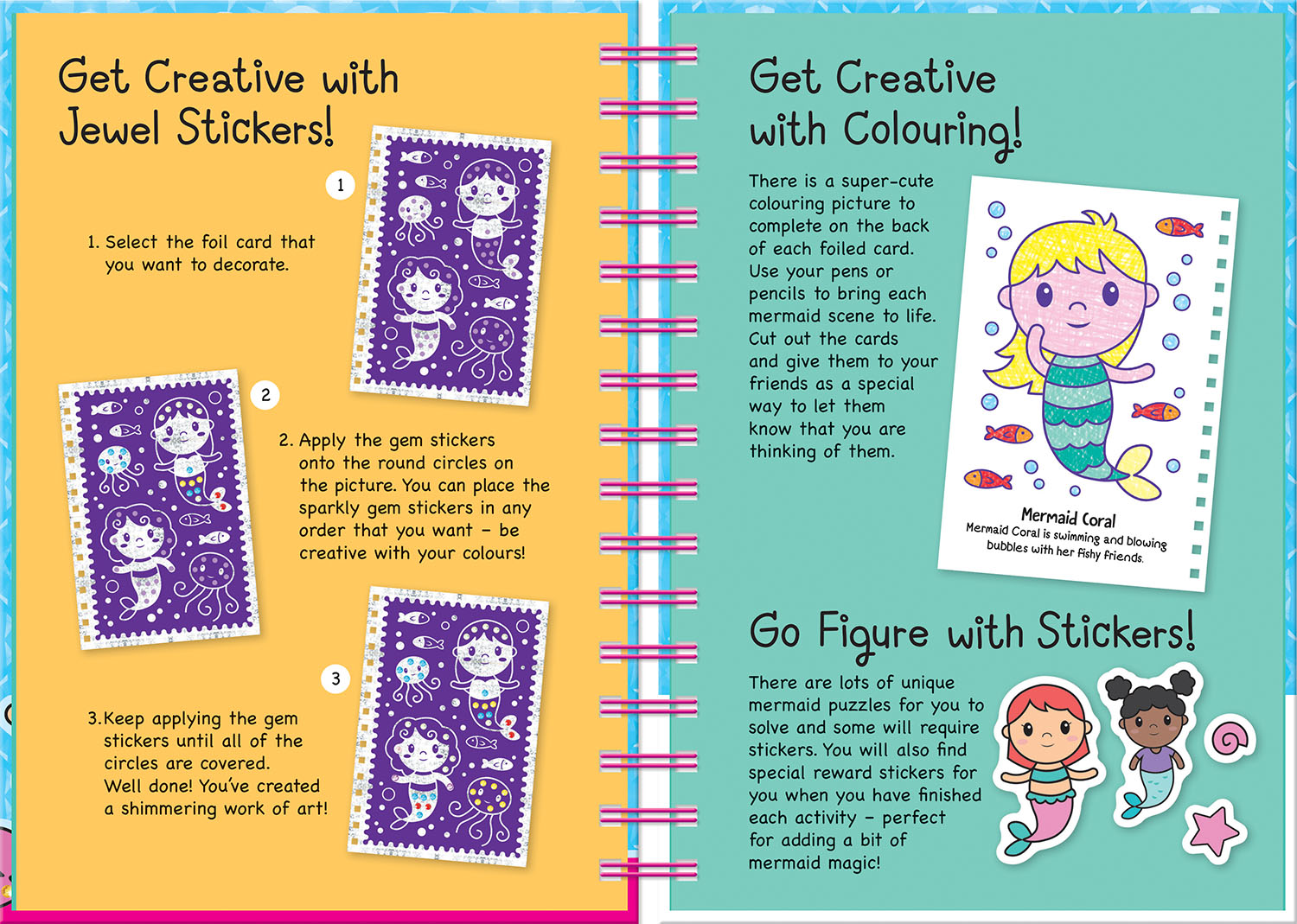 With over 100 colour stickers in addition to the jewel stickers, this mermaid activity book is crammed with content to keep you engaged for hours.