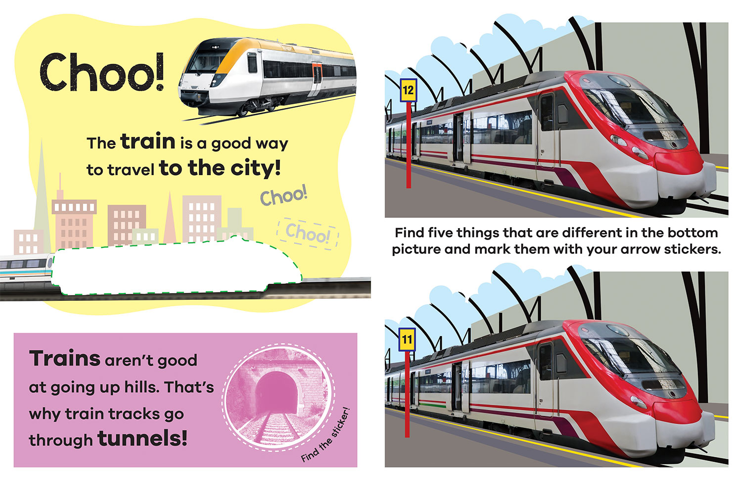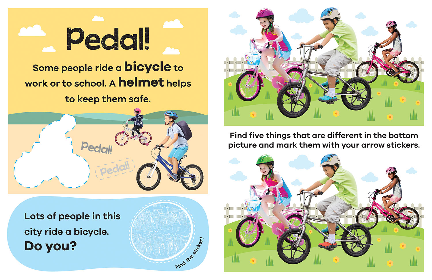 Take a trip to the busy city for spot-the-difference sticker fun. Discover building sites, shops, trains, planes and more, then spot and stick the five differences between the photographic scenes on each spread. Simple, easy-to-read text about each scene combines together with bold, colourful graphics and appealing photographs for parent-child sharing. Onomatopoeic words throughout add to the early learning fun for boys and girls age 3 and up.