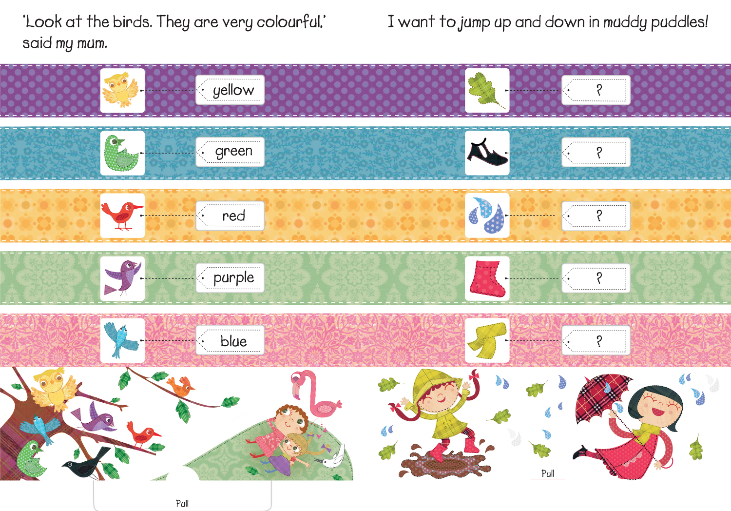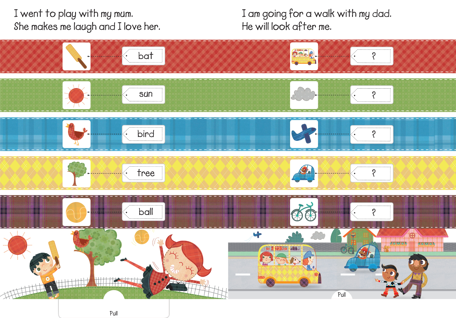 Featuring all Reception high-frequency words and with bold, colourful illustrations by Steph Hinton, children will love to pull the tabs on each robust page to discover important first words. With simple text to guide learning exploration, children aged 3+ will soon have the confidence to have a go alone.