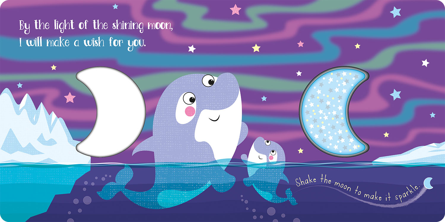 Shake the book to create a colourful cascade of glitter and foil shapes inside the moon, which is secured to the inside of the book so you can make the moon shake, shimmer and sparkle on each page. The gentle, rhyming story, swirling glitter and foil stars and cute illustrations will calm and reassure little ones before they go to sleep.