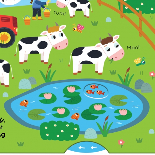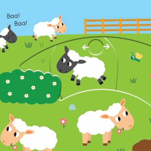 Interactive board books with push, pull and slide mechanisms on each page.