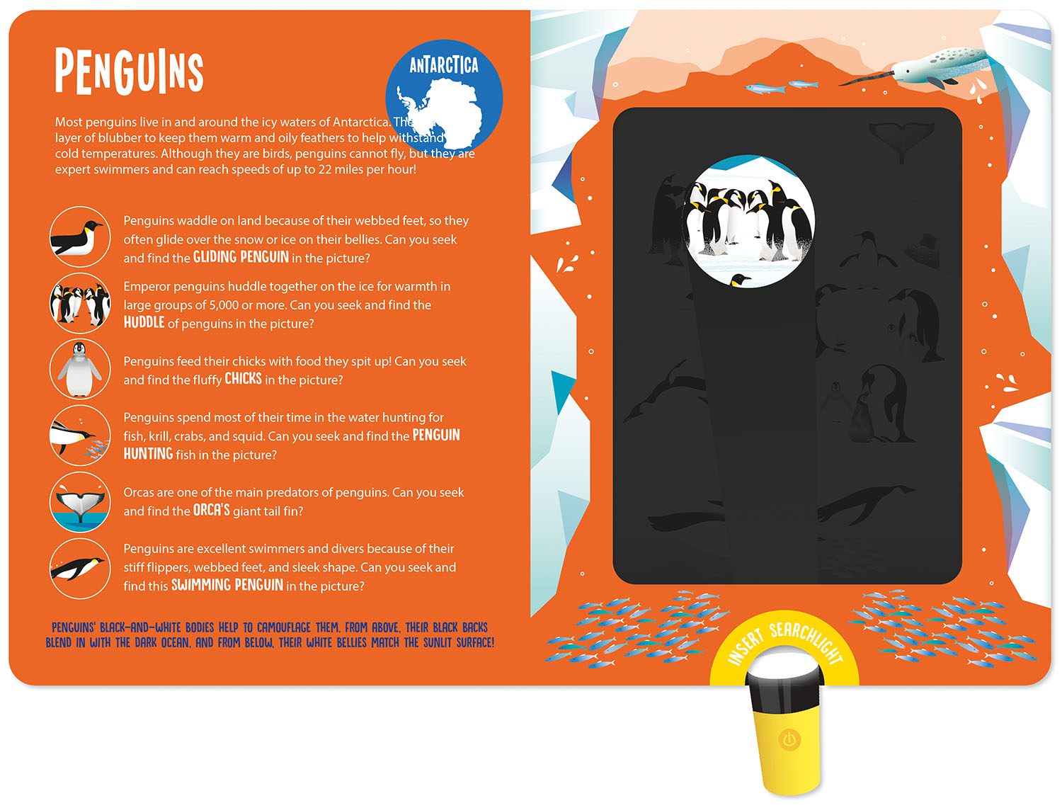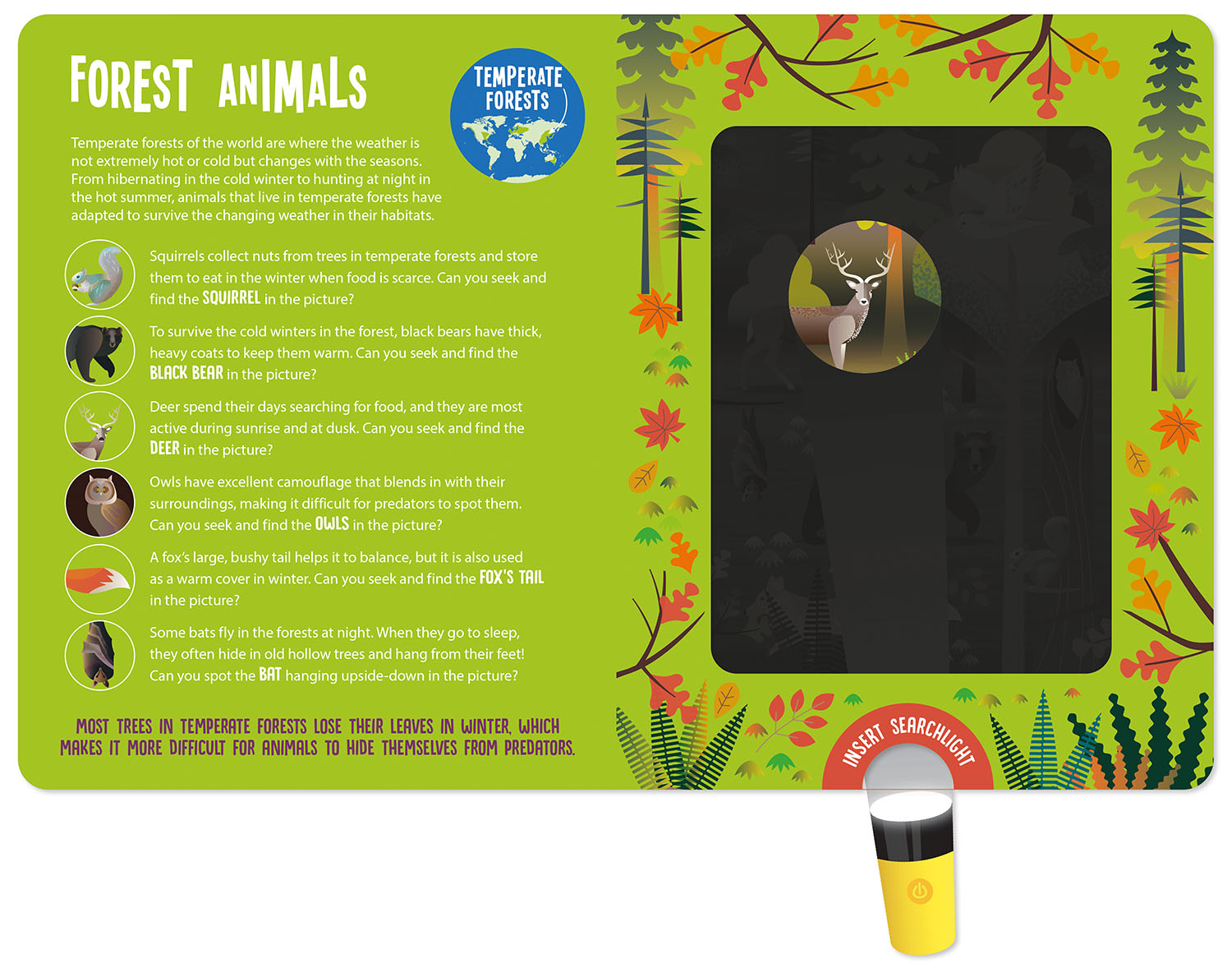 Seek and Find incredible animals and learn hundreds of fascinating facts by lifting the flaps and using the magic card searchlight in this innovative hardback novelty gift book. With friendly and easy-to-understand text and vibrant full colour artwork on every page, this amazing reference book will delight all children and will provide a great introduction to the world of animals! Features lift-the-flaps and three magic searchlight seek and find pages.