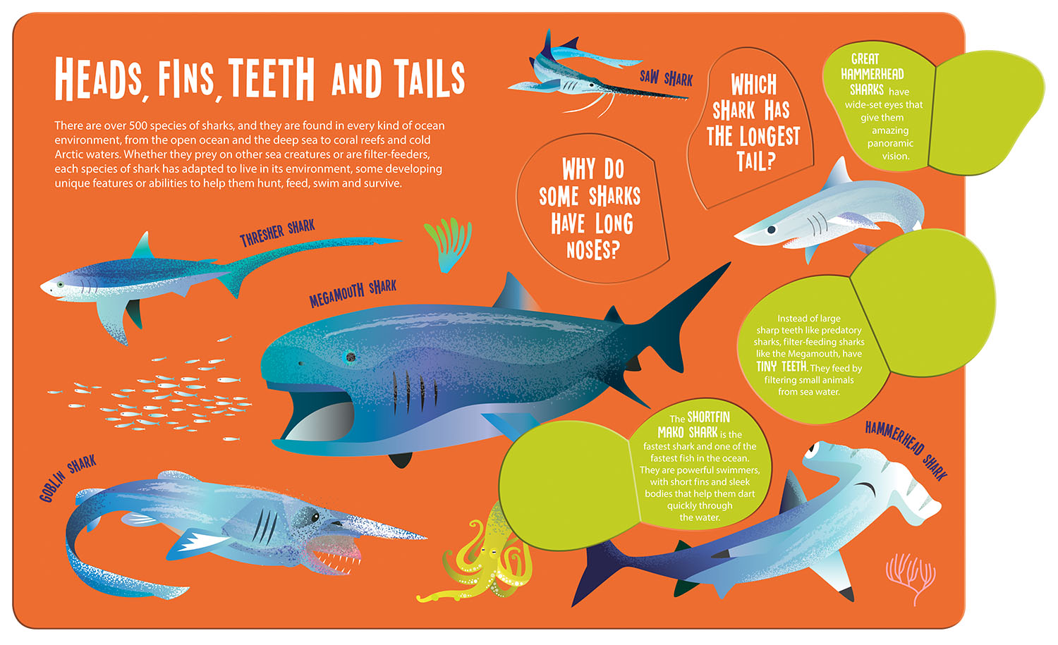 Seek and Find incredible sharks and learn hundreds of fascinating facts by lifting the flaps and using the magic card searchlight in this innovative hardback novelty gift book.