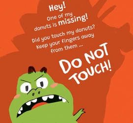 A laugh-out-loud, interactive story in which readers must try to turn the pages without touching the donuts and upsetting the dinosaur.