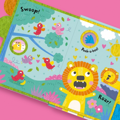 Young children will love to touch the soft felt shapes and peep through the holes to discover friendly characters.